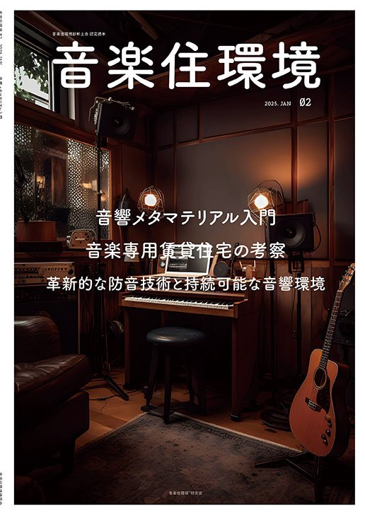 主な内容は、音響メタマテリアル入門 (TUJIMOTO Ryoma) / 音楽住環境デザインの要点②(音楽住環境診断士®会) / 音楽専用賃貸住宅の考察(音楽住環境診断士®会) / BGMと効果音の制作• 編集ガイド① / 音源ライブラリの管理とバックアップの要点 / 自宅で楽しむカラオケのための音響機器選び① (OISHI Haruto) / 革新的な防音技術と持続可能な音響環境 (NAITO Hiroto) / 自宅レッスンルームの設計と音響処理のポイント① / 高速インターネット接続の選び方 (HONDA Ryo) / 世界の音楽ホームスタジオ事情② (KUBOTA Yoji) / シネマ• カフェ ‐ スクリーンの向こう側で ‐ vol.1(MATUMOTO Nana) / 真空管の囁き ‐ 真空管アンプの深奥へ「12AX7 デュアルトライオードの名品」 ‐ vol.1 (KUBOTA Yoji) / フレットの行間 ‐ 名器が語る物語 「マーティン D-28」‐ vol.1(YOKOI So) / Sips & Sounds ‐ 音楽とお酒の旅 ‐ vol.1(SAKAI Takayuki)